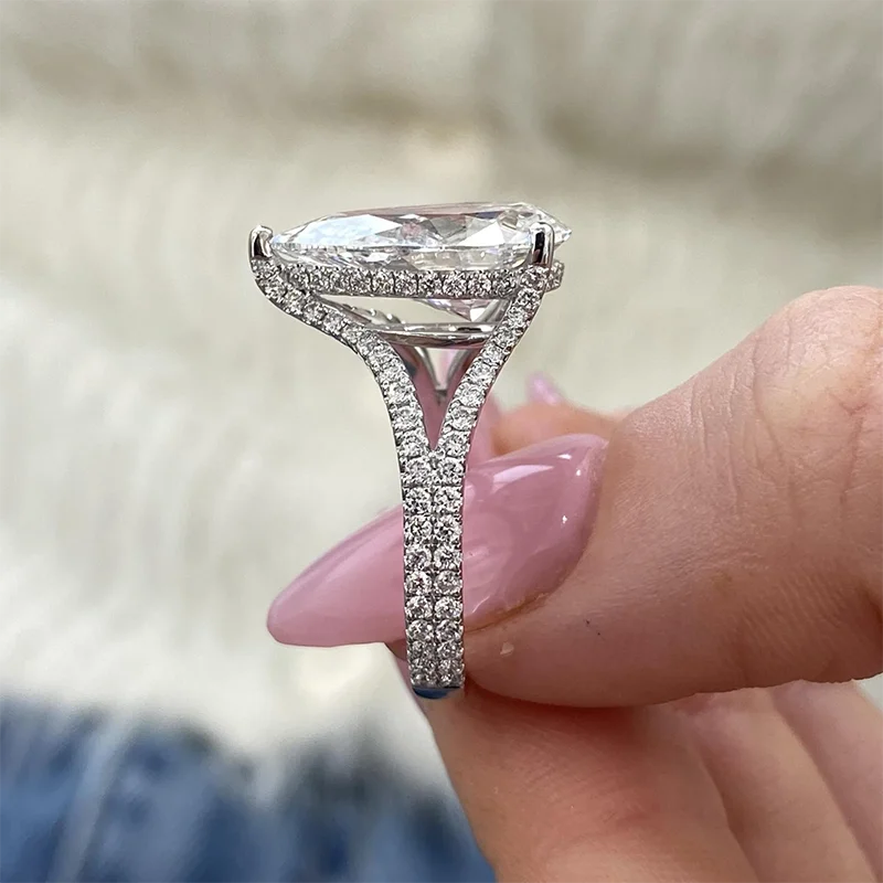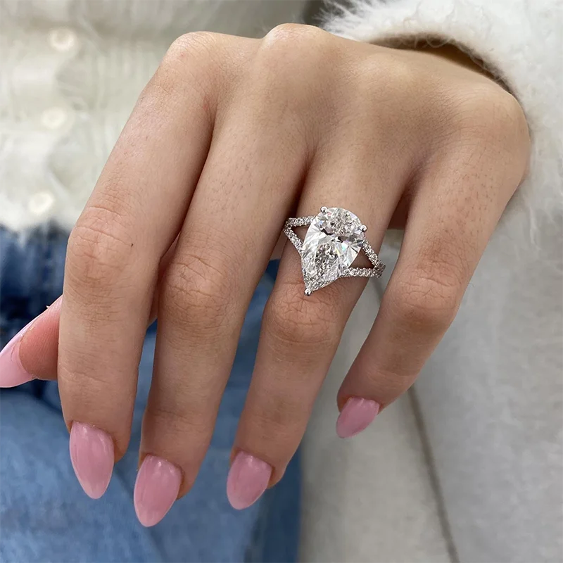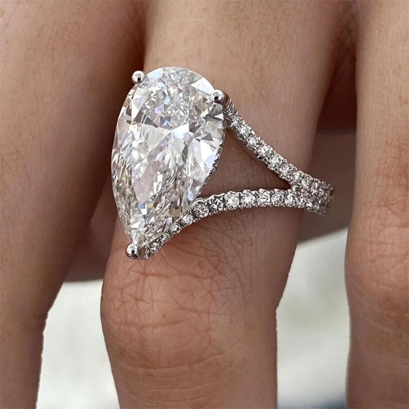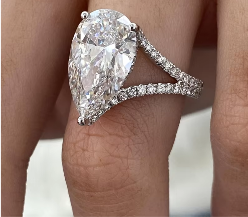 Anillo de compromiso de oro de 14K y 10K con certificación IGI, 5,80 quilates, EF/VS, corte de pera, CVD, diamante cultivado en laboratorio, vástago dividido.