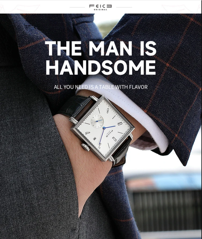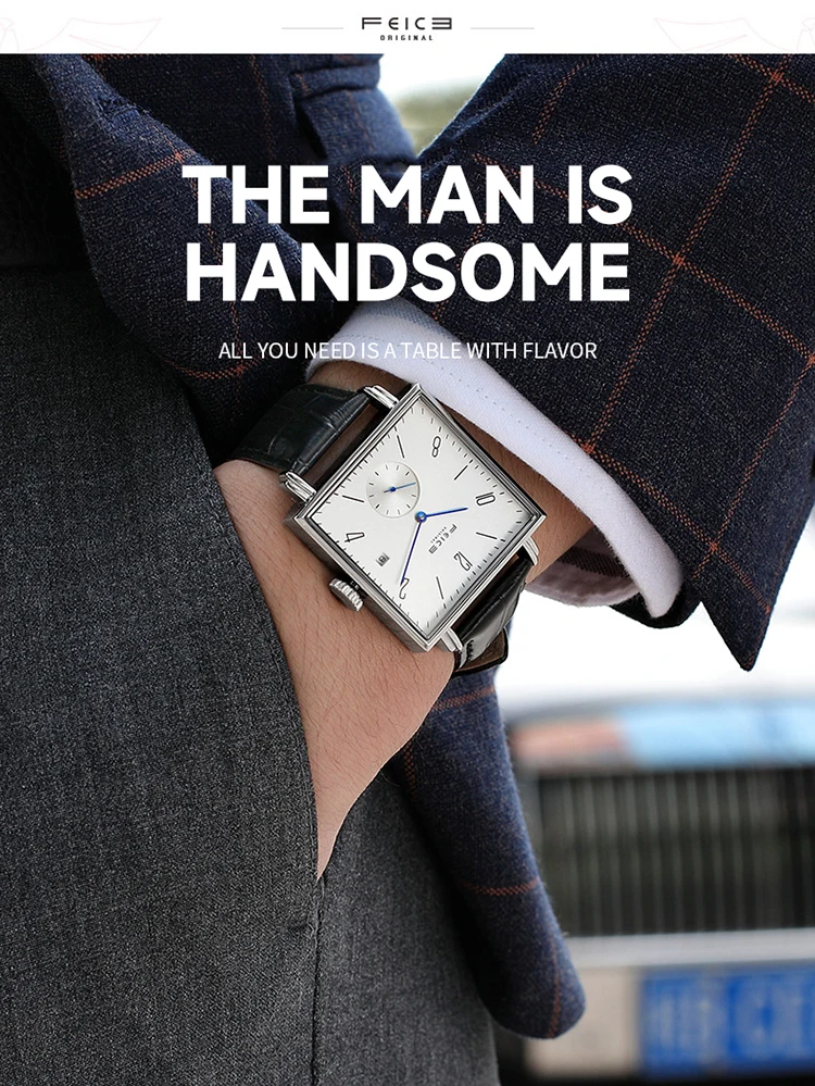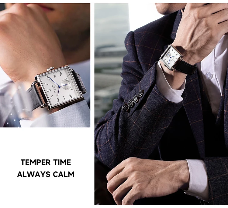 Reloj automático cuadrado: Diseño simple y generoso, sin distinción de