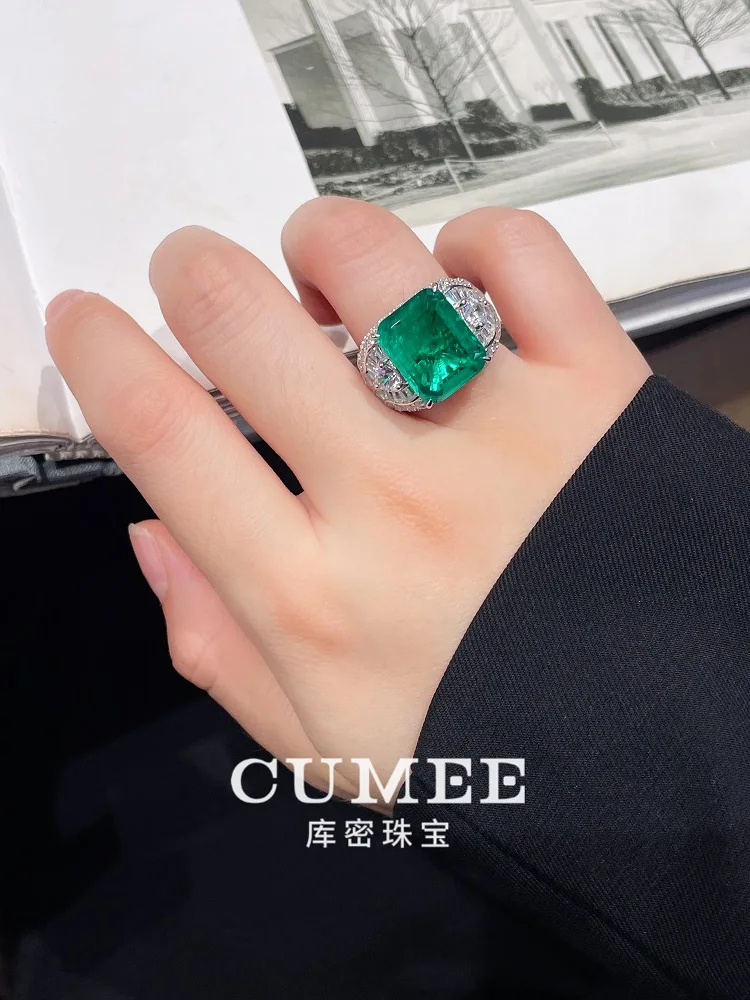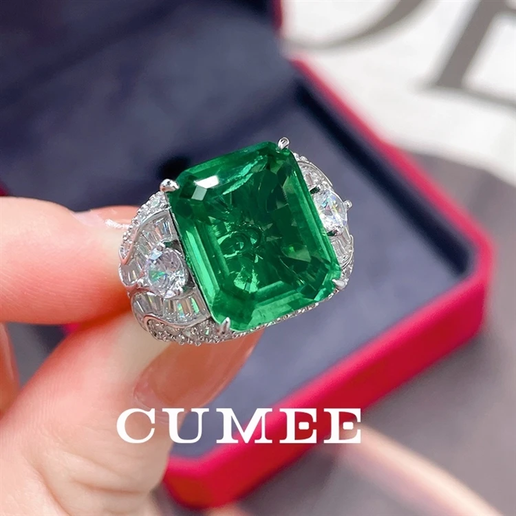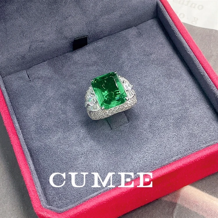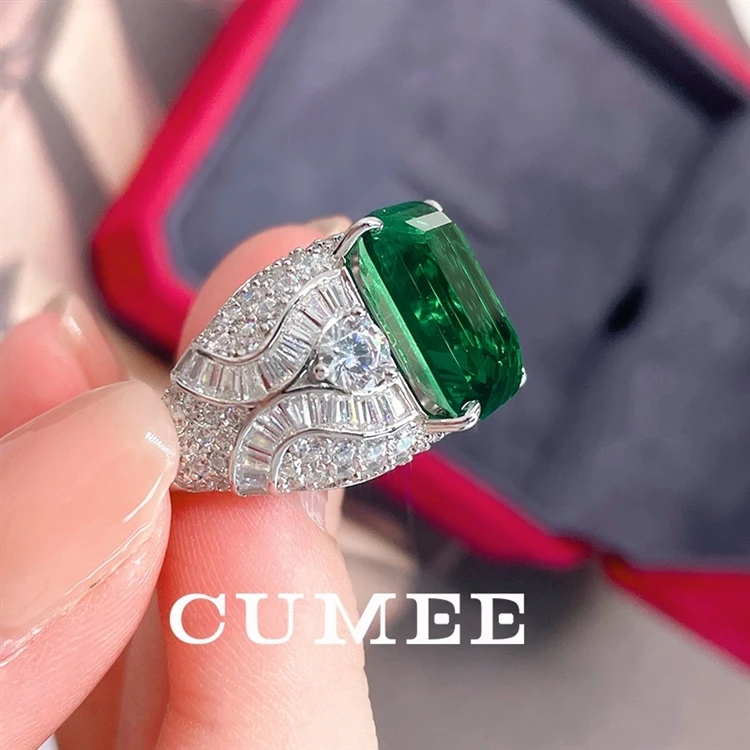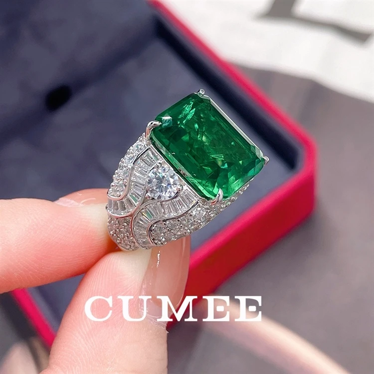 Anillos CUMEE de esmeralda colombiana verde grande para hombre y mujer,