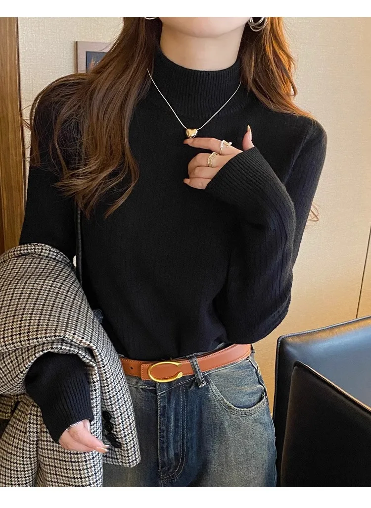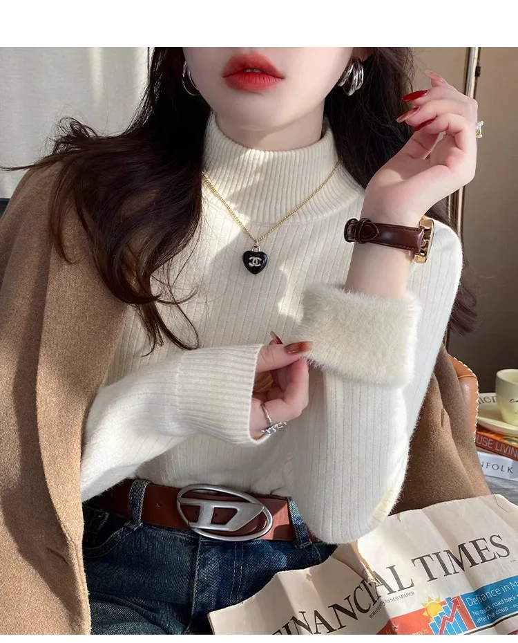 Suéter para mujer marca AOSSVIAO, Jersey de punto ajustado con cuello alto grueso de invierno, nuevo Jersey de punto forrado de terciopelo de felpa cálido, Tops informales, Polleras.