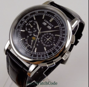 Corgeut-reloj automático para hombre, 42mm, fecha, día, mes, año, esfera , multifunción, correa de cuero 316L, caja pulida, día y noche.