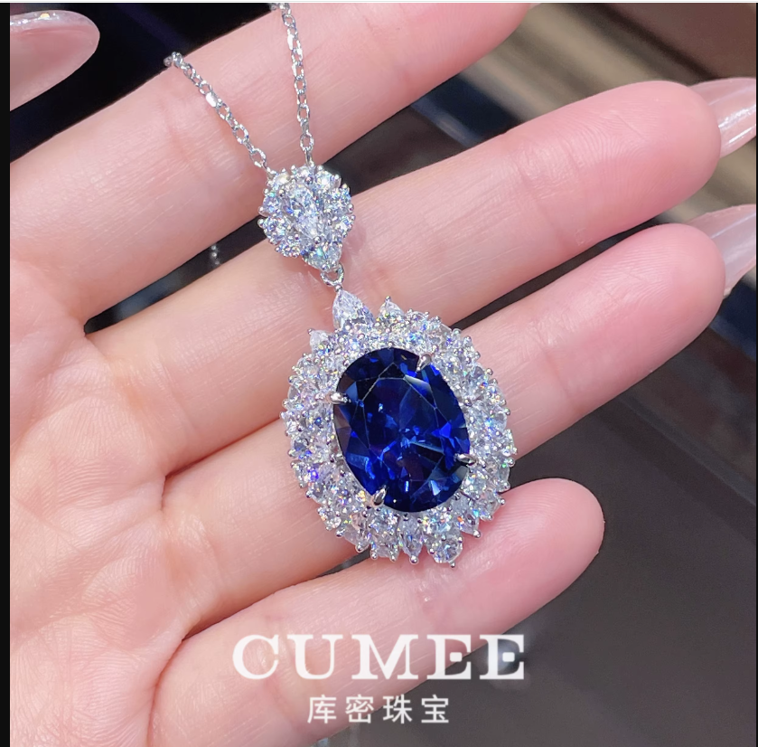 CUMEE Colgante grande de lujo de 13 quilates con luz azul real de alta