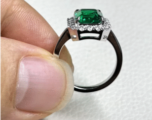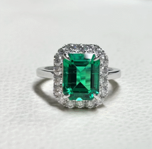 Meisidian Anillo de diamante moissanita con esmeralda verde cultivada en