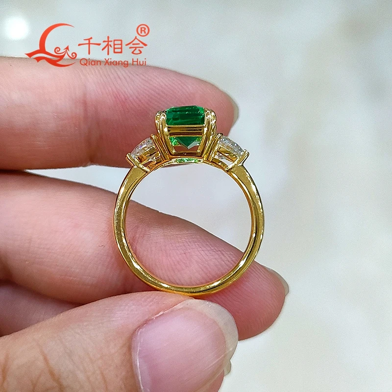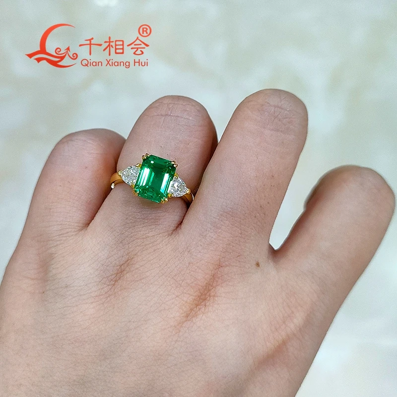 Anillo de moissanita de 7 x 9 mm, color verde esmeralda cultivado en