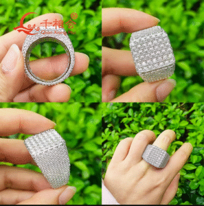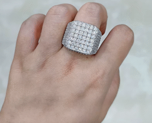 Adorne sus dedos con el lujo radiante de una piedra moissanita de 20 mm, que ofrece una brillante exhibición de elegancia.