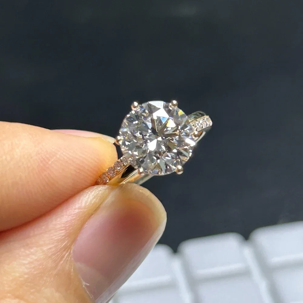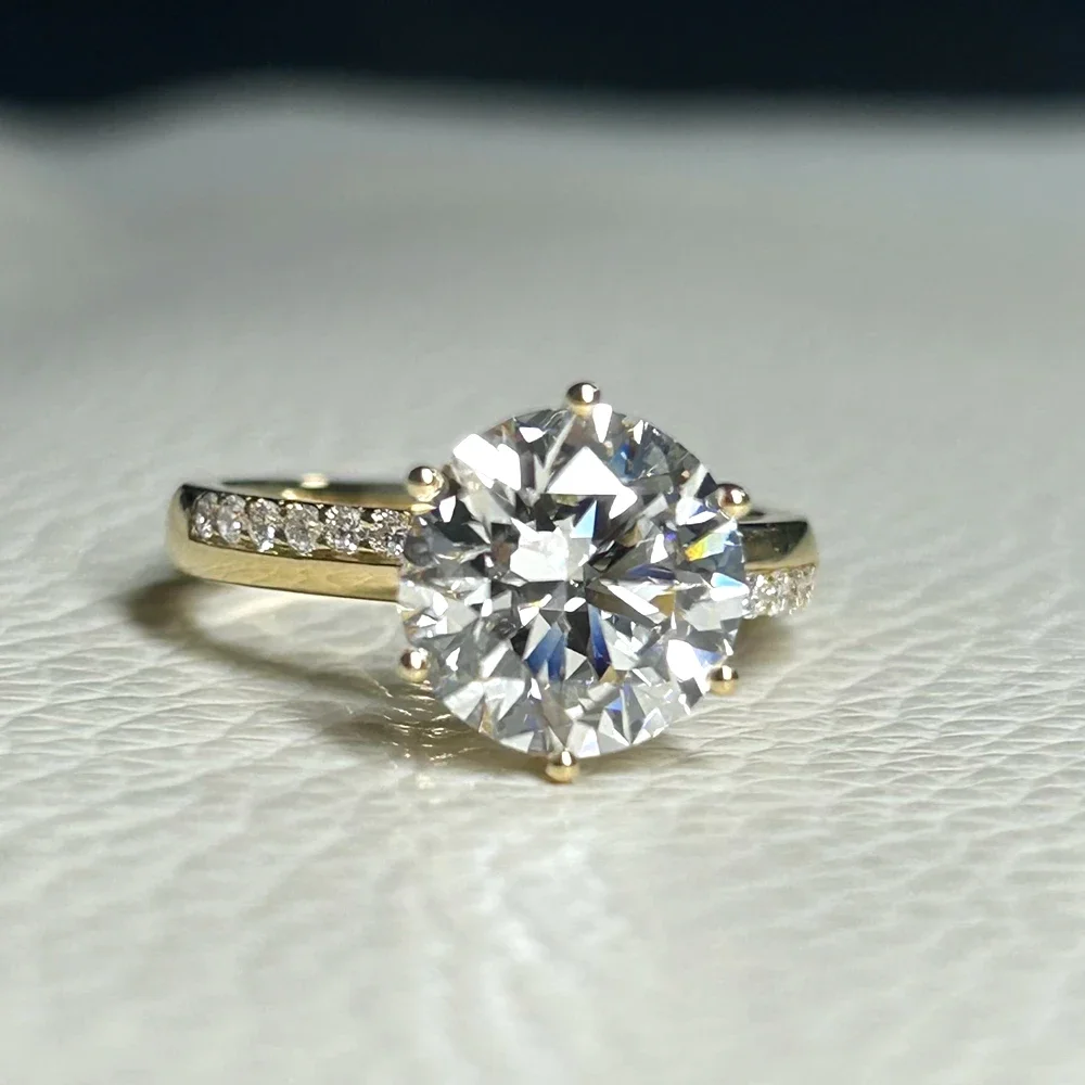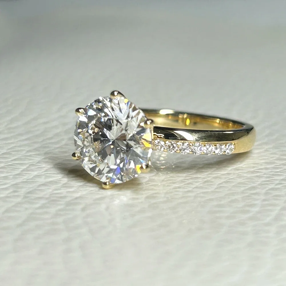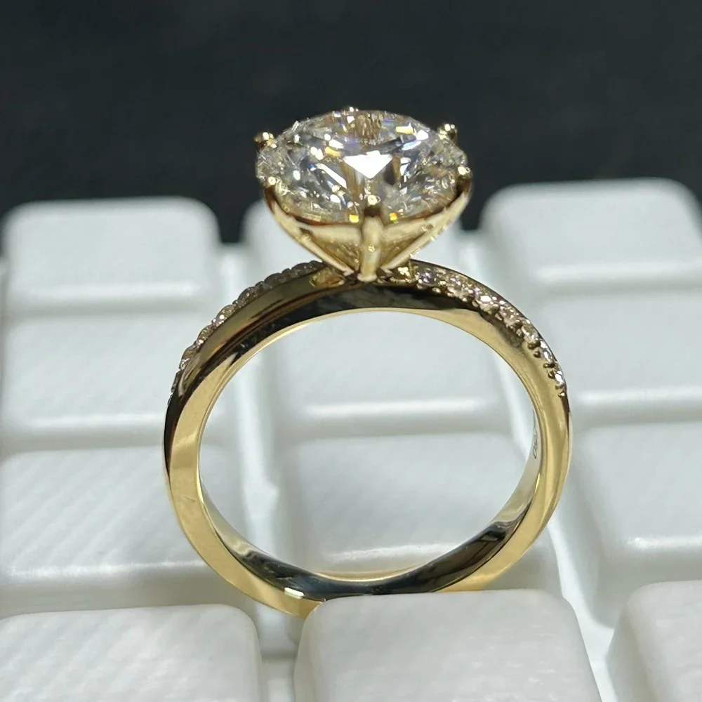 Meisidian. ANILLO personalizado 18K oro amarillo;diamante3 quilates redondo IGI D VS1 Lab CVD:Anillo de compromiso para mujer.