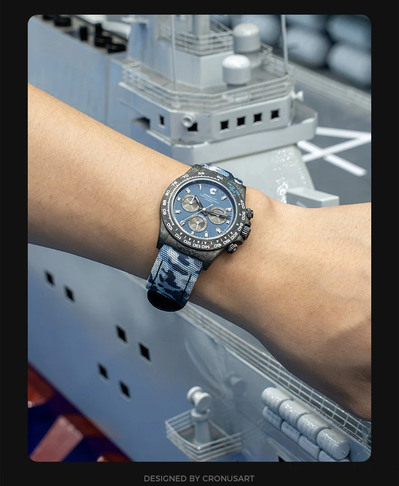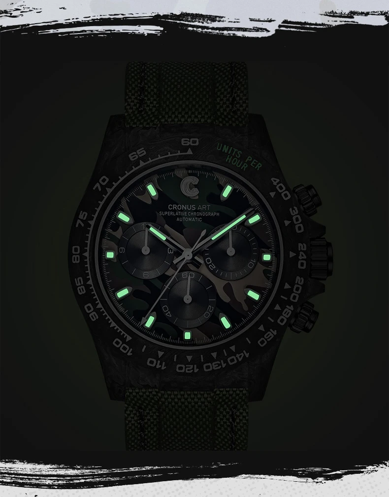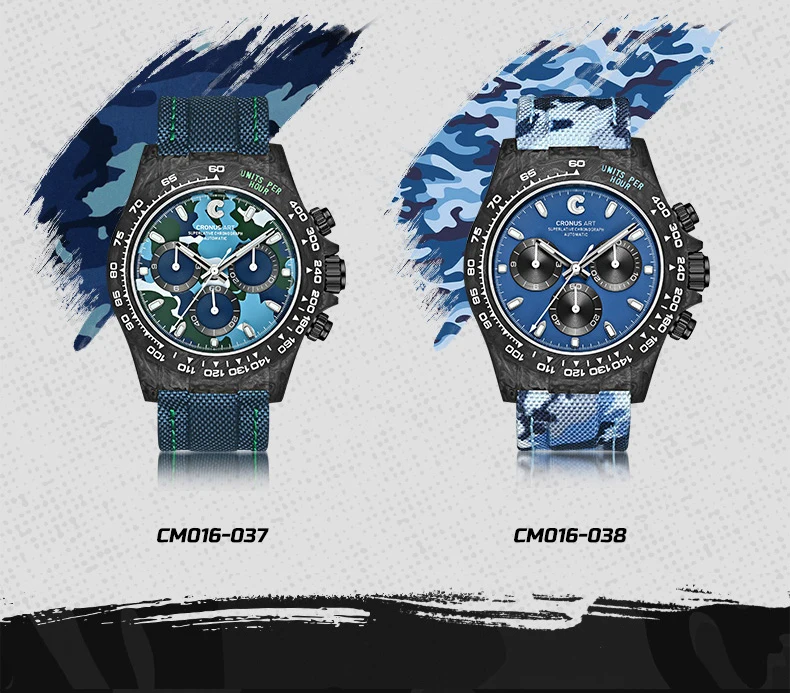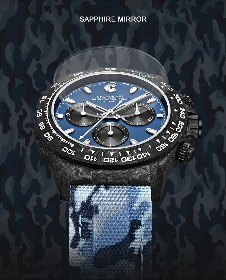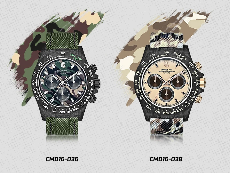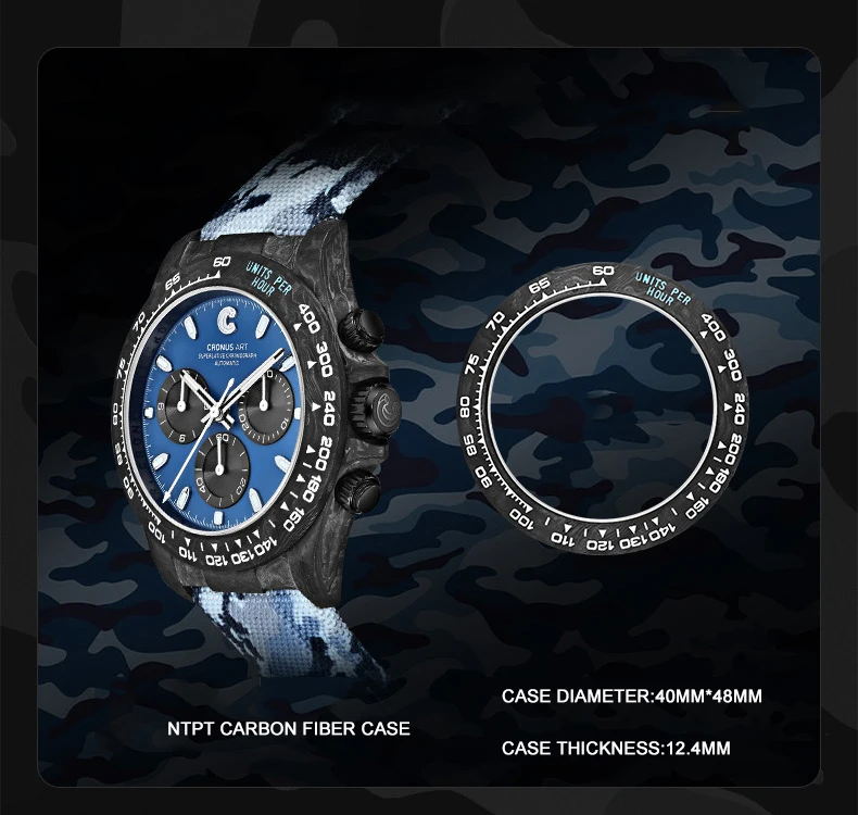 Reloj cronógrafo CRONUSART para hombre, caja de fibra de carbono de 40mm, reloj de pulsera mecánico automático, esfera de camuflaje de zafiro luminoso de 5ATM.