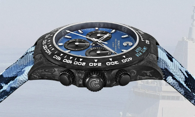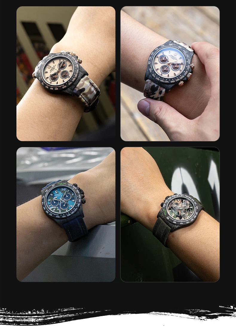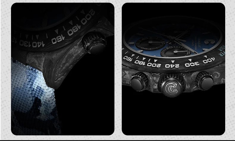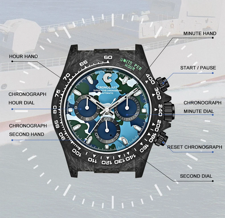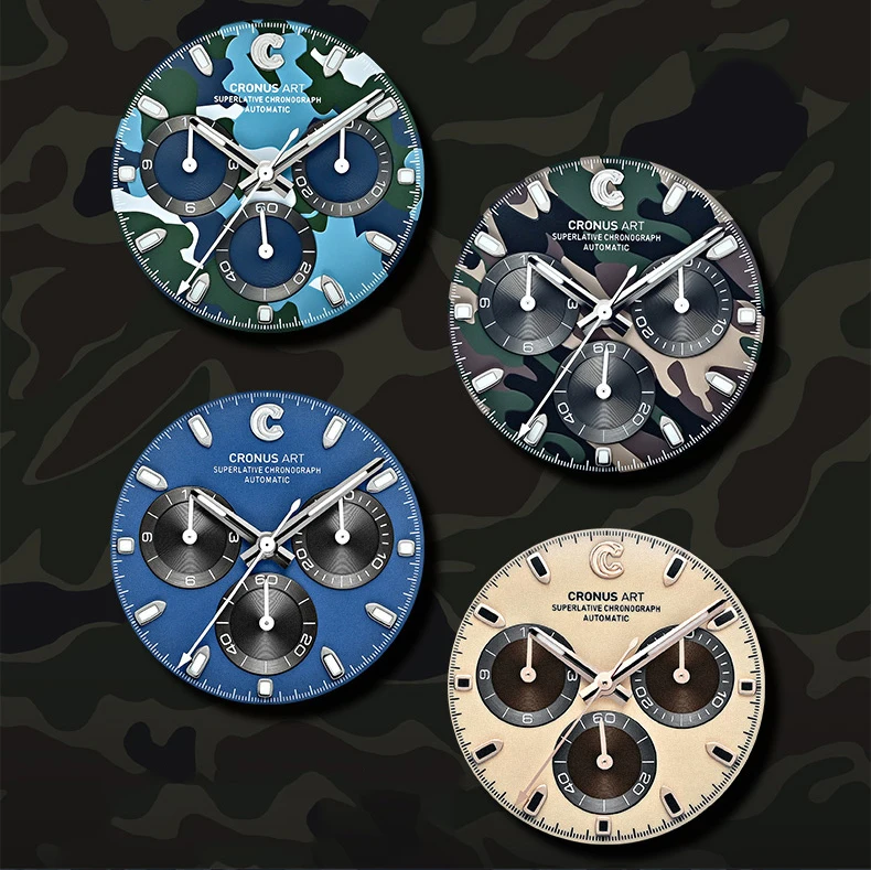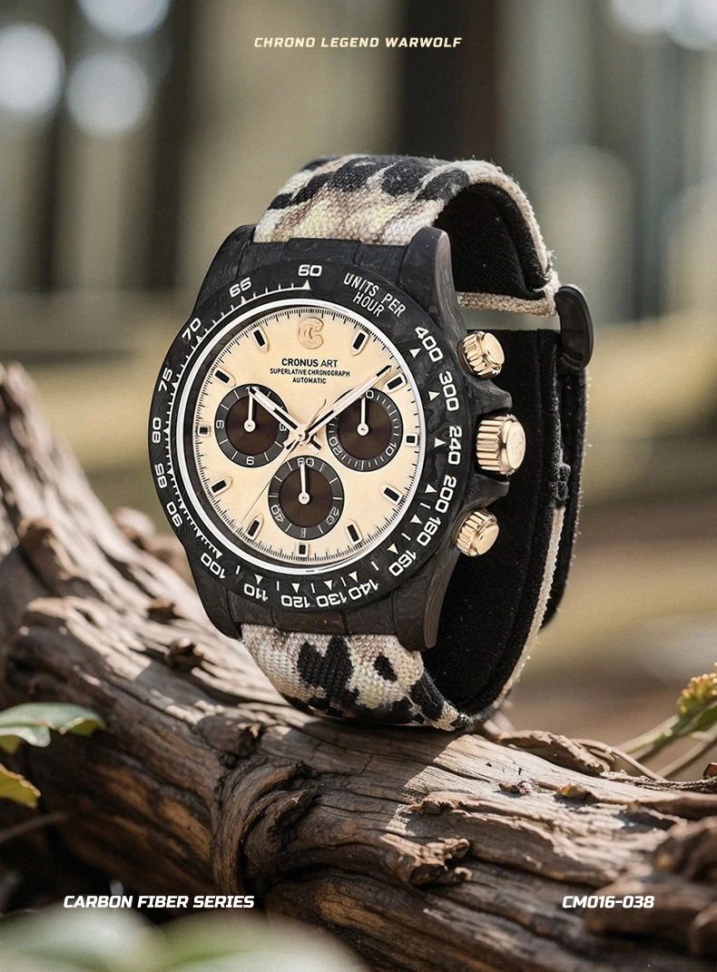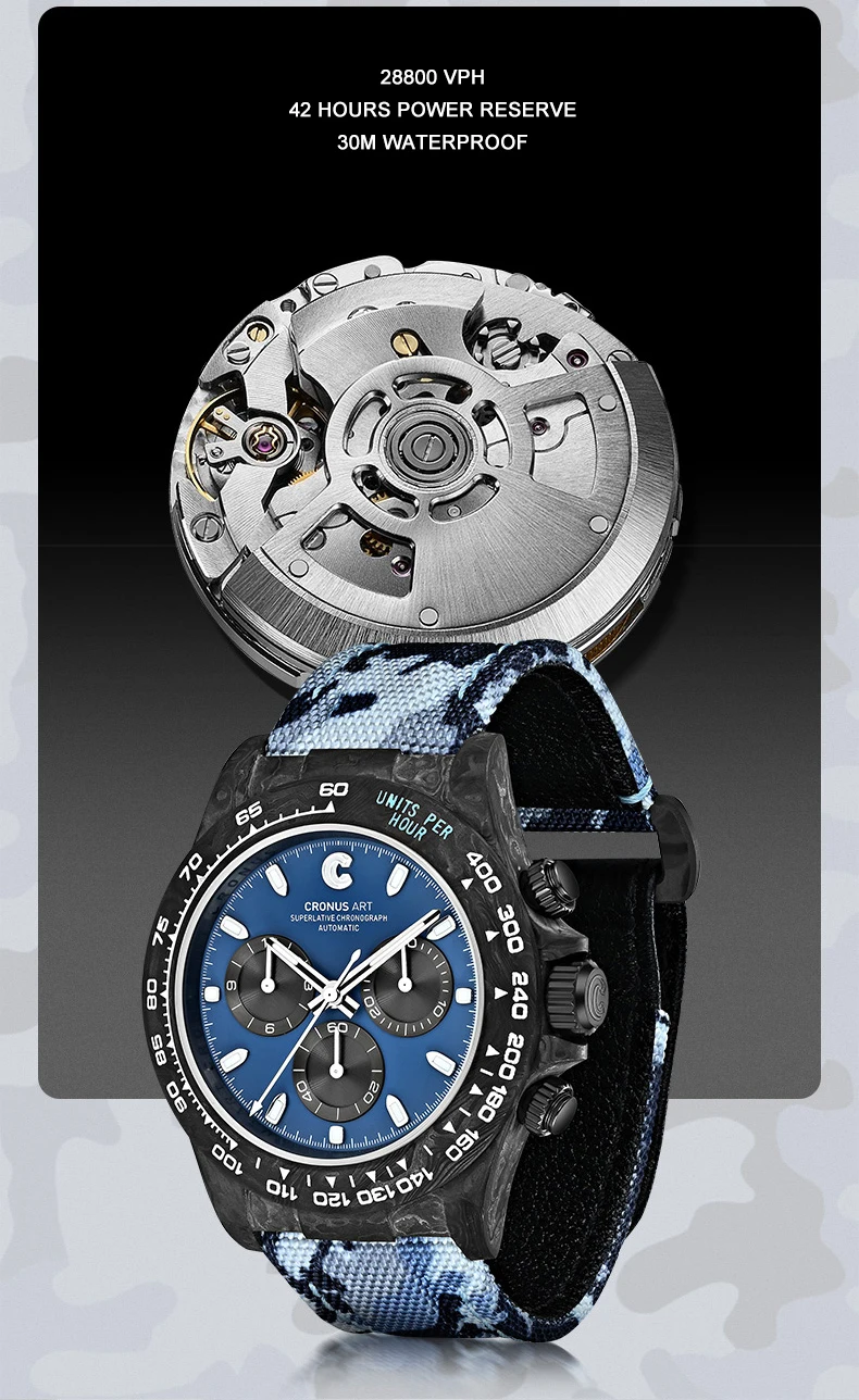 Reloj cronógrafo CRONUSART para hombre, caja de fibra de carbono de 40mm, reloj de pulsera mecánico automático, esfera de camuflaje de zafiro luminoso de 5ATM.