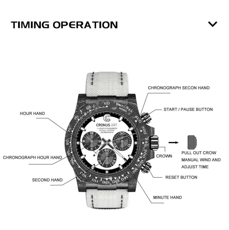 Reloj cronógrafo CRONUSART para hombre, caja de fibra de carbono de 40mm, reloj de pulsera mecánico automático, esfera de camuflaje de zafiro luminoso de 5ATM.