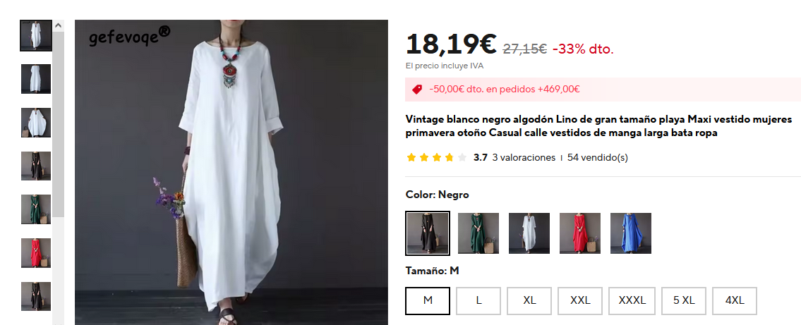 Vestido vintage de algodón ,lino de gran tamaño para playa