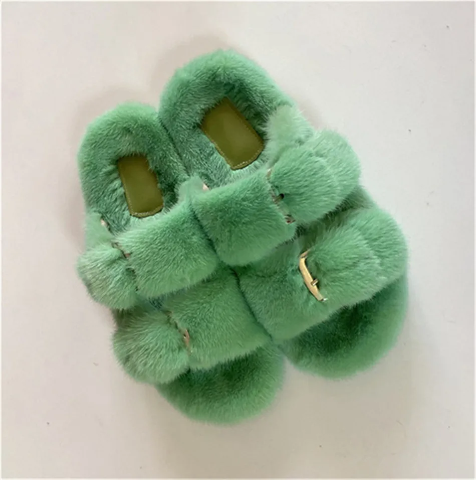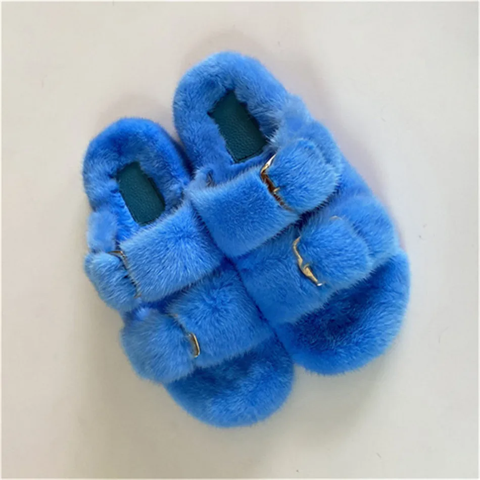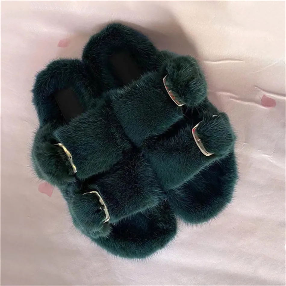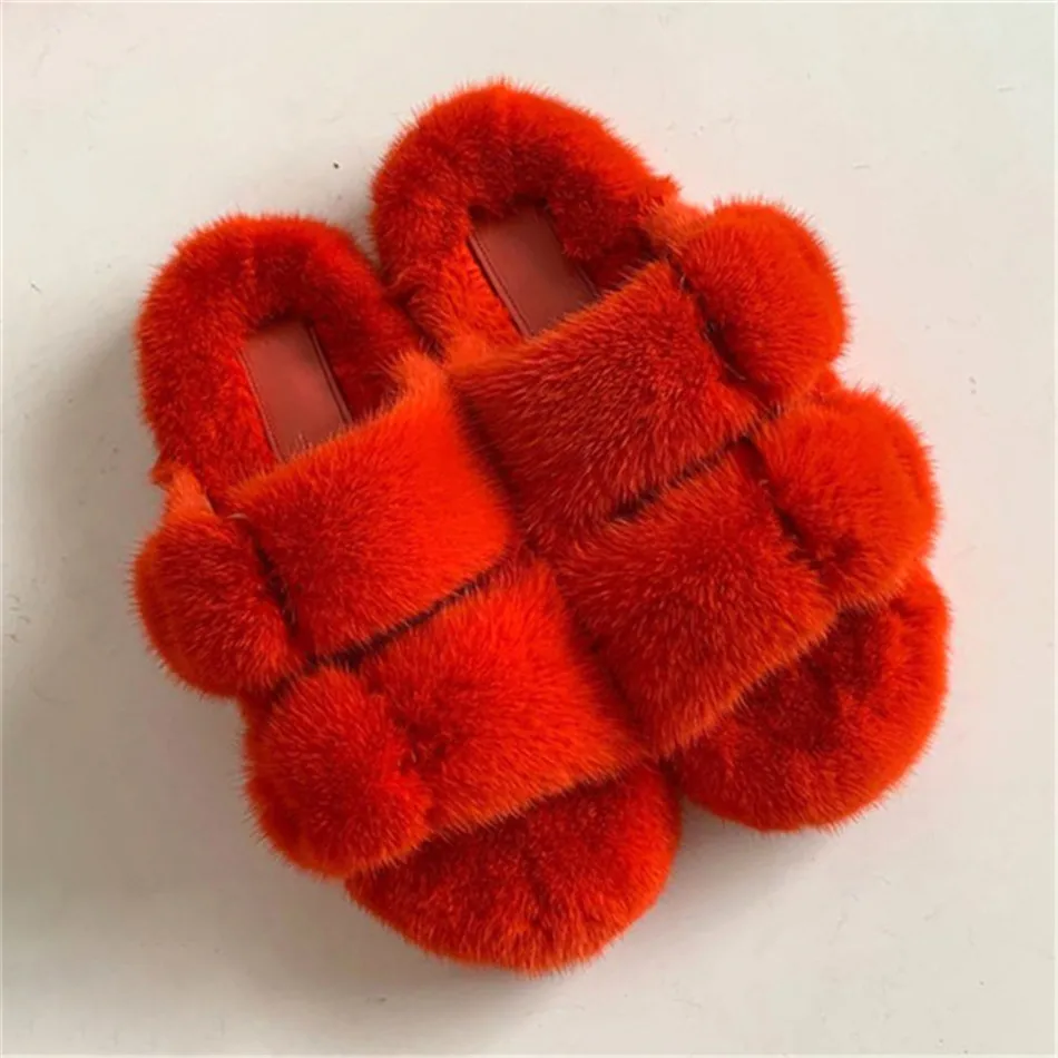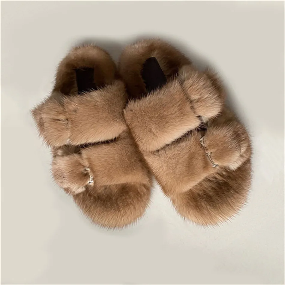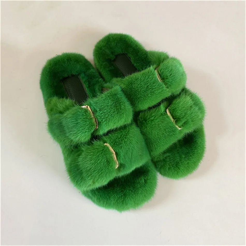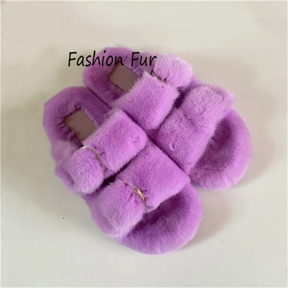 Zapatillas de piel para mujer, 100% zapatillas de piel de visón auténtica, estación europea